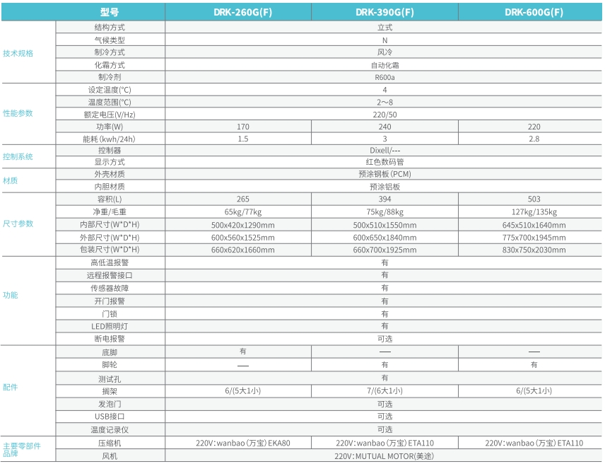 (1)微電腦控制,數(shù)碼溫度顯示,顯示精度0.1℃。強制風冷系統(tǒng),箱內(nèi)溫度恒定控制在2℃~8°℃。